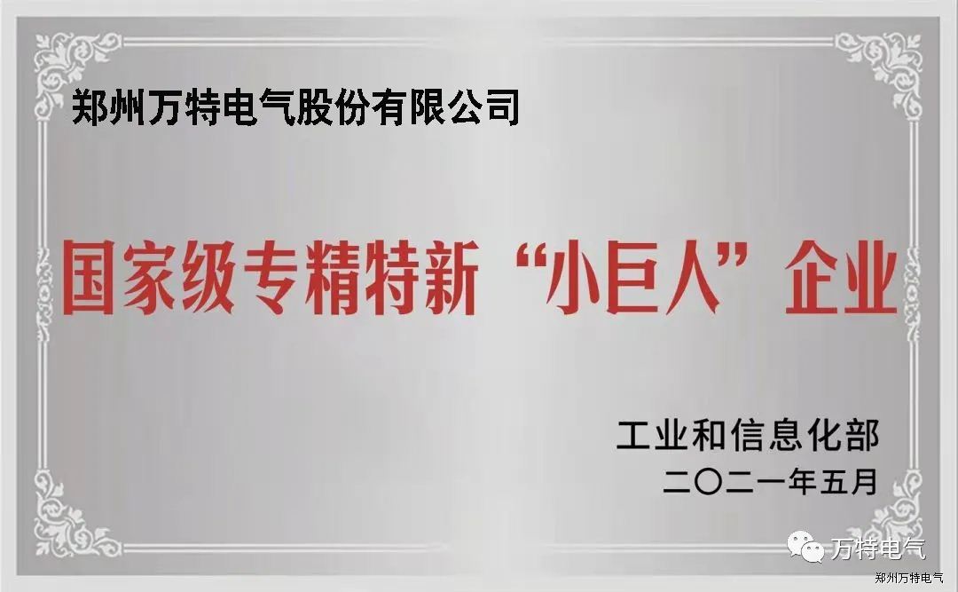 為深入貫徹習(xí)近平總書記關(guān)于“培育一批專精特新中小企業(yè)”、提升中小企業(yè)創(chuàng)新能力的重要指示批示精神,國家工業(yè)和信息化部開展了第三批專精特新“小巨人”企業(yè)培育工作,現(xiàn)已完成各省級中小企業(yè)主管部門初核和推薦、行業(yè)協(xié)會限定性條件論證、專家審核、公示等程序,鄭州萬特電氣股份有限公司名列在榜,被授予國家級專精特新“小巨人”企業(yè)稱號。