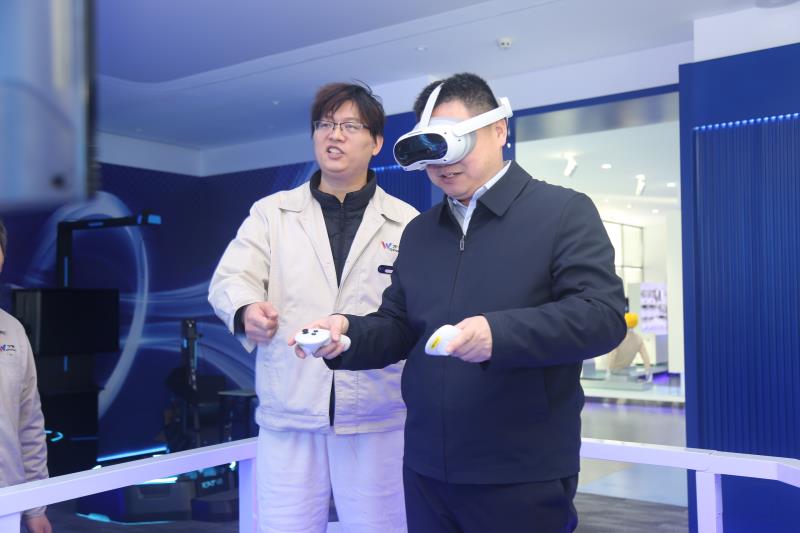 交流期間,學(xué)院一行走進(jìn)萬特電氣展廳,沉浸式體驗(yàn)了高空墜落體感裝置、電力安全VR體感裝置、全向移動(dòng)式電力巡視VR體驗(yàn)系統(tǒng)、多人動(dòng)感電力巡線VR體驗(yàn)系統(tǒng)等核心產(chǎn)品。通過虛實(shí)結(jié)合的互動(dòng)體驗(yàn),直觀感受VR技術(shù)與電力行業(yè)的深度融合,切實(shí)體會(huì)到數(shù)字化技術(shù)為電力安全培訓(xùn)、作業(yè)流程優(yōu)化帶來的革命性變化與獨(dú)特價(jià)值。