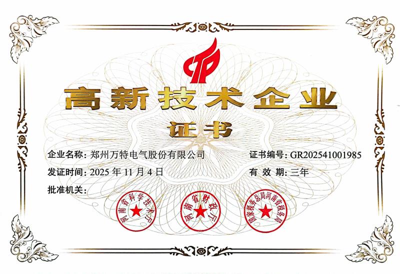 近日,萬特電氣傳來重磅喜訊!根據(jù)《關于組織開展2025年度高新技術企業(yè)申報工作的通知》(豫高企〔2025〕1 號)文件規(guī)定,河南省2025年第一批3160家擬認定高新技術企業(yè)名單完成公示及核定,萬特電氣憑借出眾的科研創(chuàng)新能力、精細化的產(chǎn)品制造能力和穩(wěn)定的品質把控能力,繼2022年再次通過 “高新技術企業(yè)” 這一重量級榮譽資質認證,相關認定證書已正式下發(fā),有效期三年。