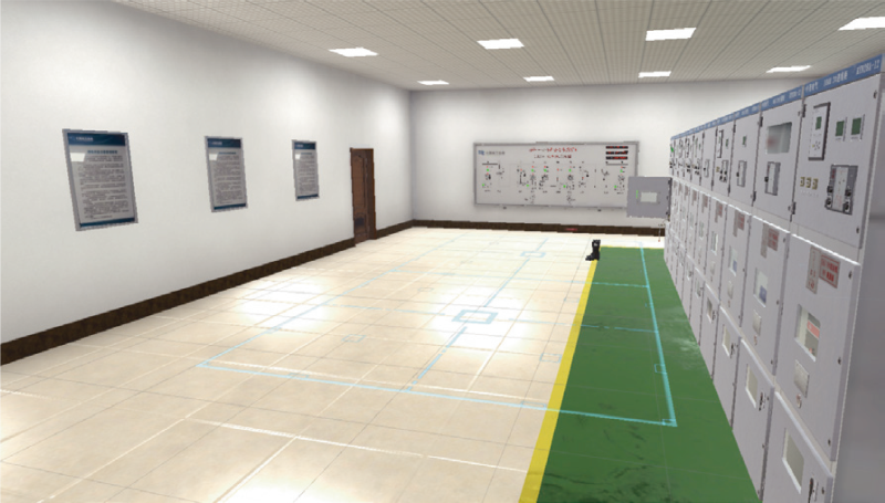 本項目在虛擬場景中搭建10kV典型配電室場景,系統(tǒng)采用10kV雙電源進線方式,包括進線柜、計量柜、PT 柜、出 線柜、聯(lián)絡柜、模擬屏等,模擬10kV開關柜日常運行方式,進行開關柜運行轉(zhuǎn)檢修、檢修轉(zhuǎn)運行作業(yè)過程中典型
