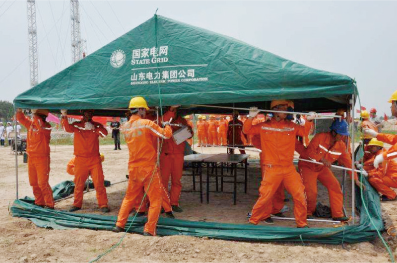 本項(xiàng)目在虛擬環(huán)境中配置全面的教育實(shí)訓(xùn)物 資裝備,主要進(jìn)行現(xiàn)場指揮部或營地的快速 搭建技能實(shí)訓(xùn),包括帳篷搭建、現(xiàn)場辦公環(huán) 境、營地供電系統(tǒng)建設(shè)、照明設(shè)施布置、衛(wèi) 星通訊組建等任務(wù),訓(xùn)練統(tǒng)一組織、統(tǒng)一指 揮,在團(tuán)隊(duì)有機(jī)配合下快速搭建臨時(shí)帳篷的 能力,在最短的時(shí)間內(nèi)布置好帳篷內(nèi)的照明 設(shè)施、生活設(shè)施、辦公設(shè)施,快速組建應(yīng)急 通信系統(tǒng),完成應(yīng)急指揮所或營地的建設(shè), 為保證救援有序進(jìn)行打下基礎(chǔ)。